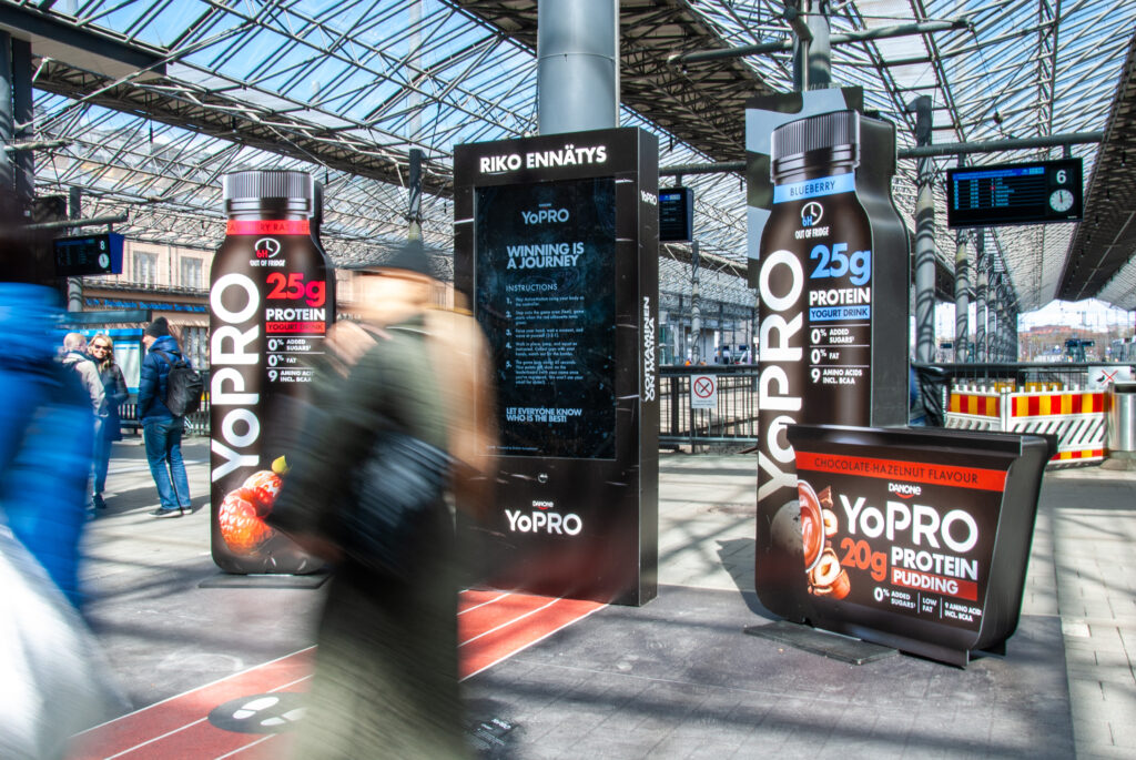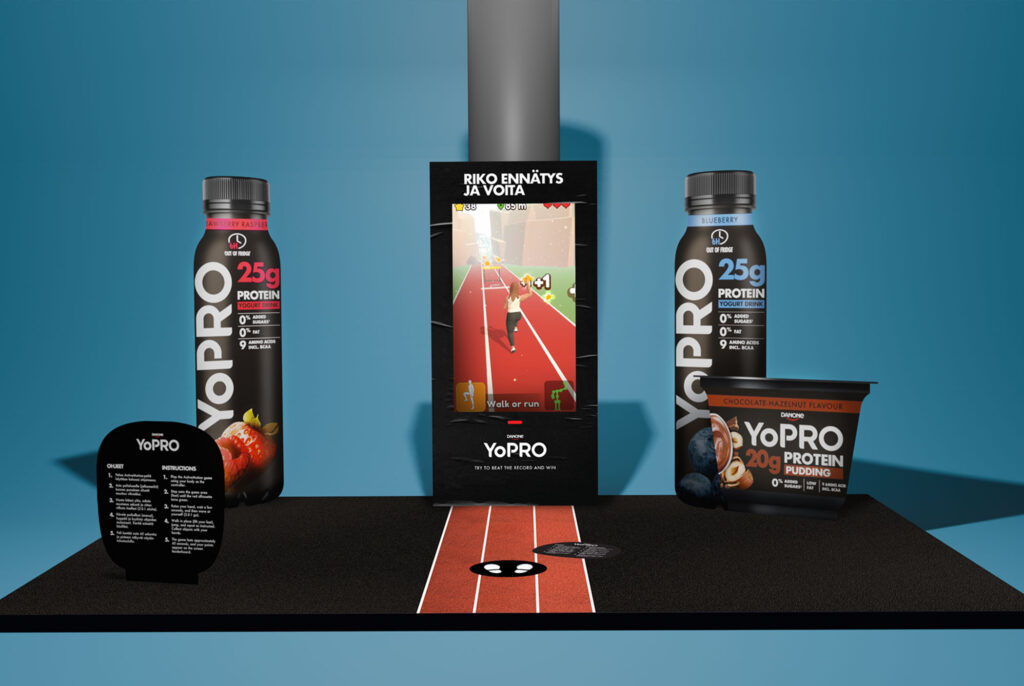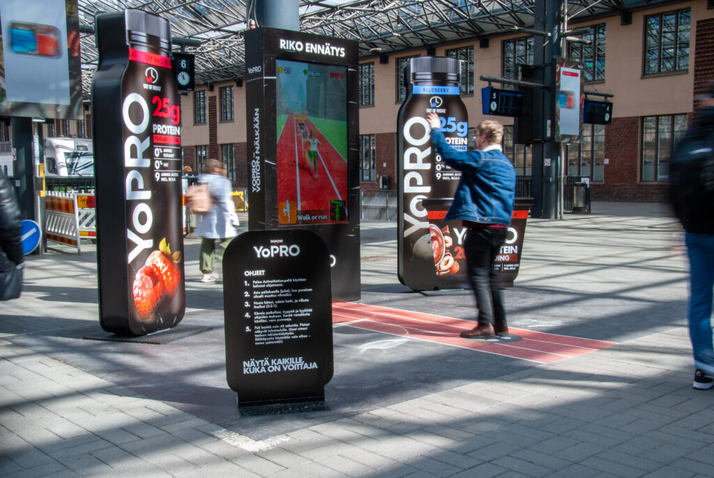 Suunnittelimme ja toteutimme Danonelle sporttihenkisen promootion. Kolmimetristen YoPRO-jogurttipurkkien keskellä pelattiin isolla screenillä Rehaboo!n kehon liikkeet tunnistavaa peliä. Tämäkin loistavaa yhteistyötä Clear Channelin ja SipuliGroupin kanssa.