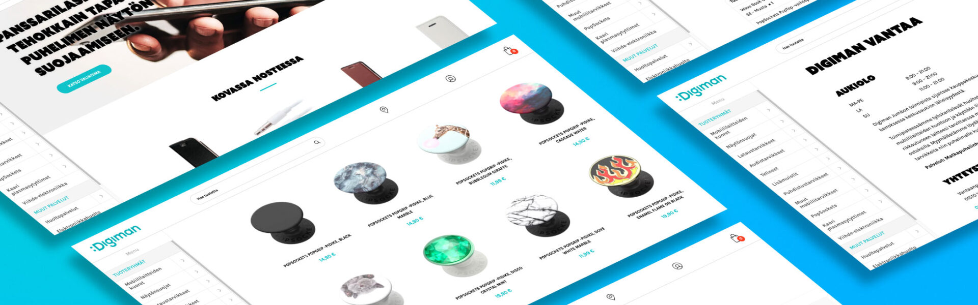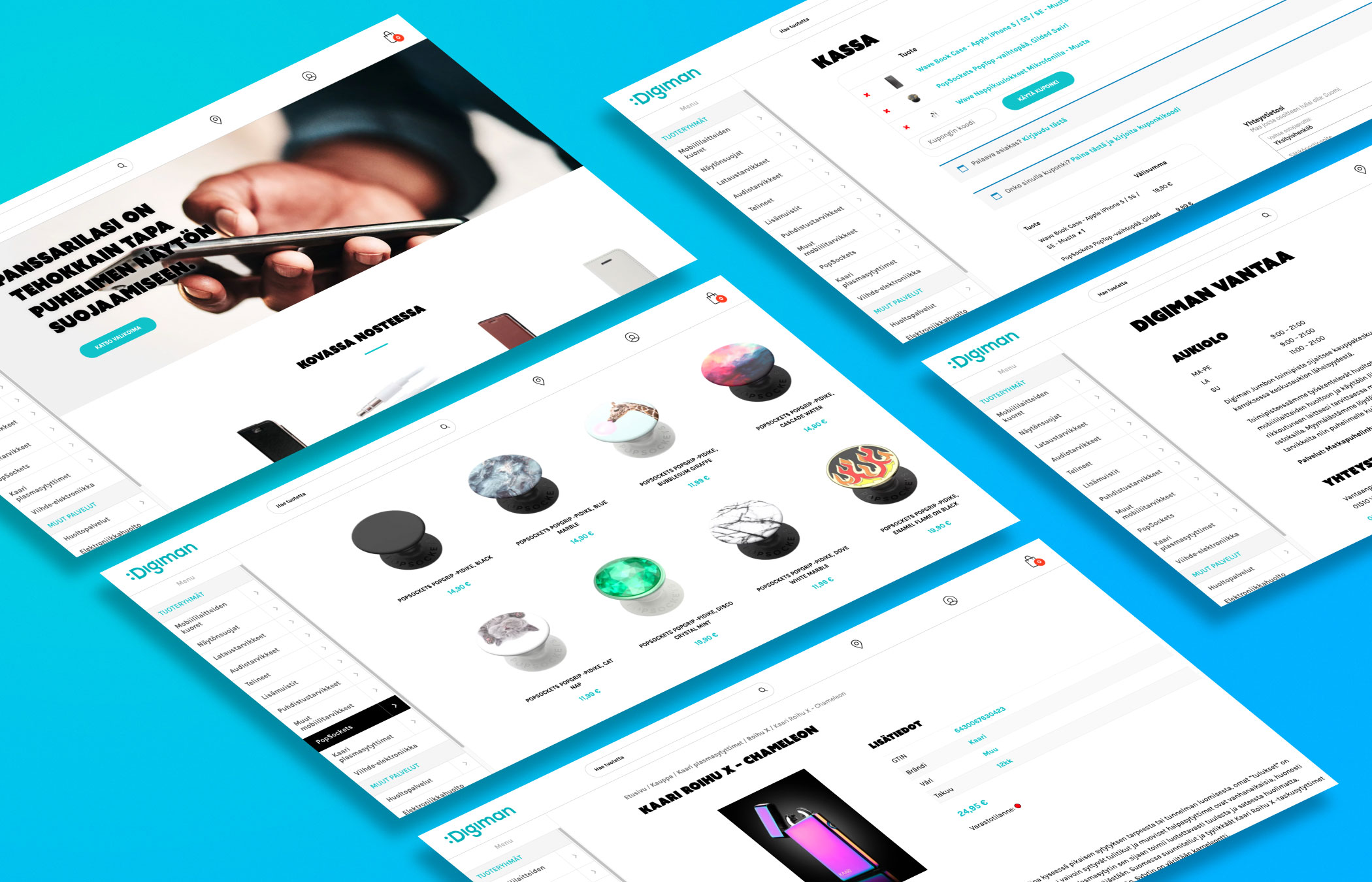 Toteutimme verkkokaupan, jonka avulla Digiman voi palvella asiakkaita kautta koko maan (tai maailman). Myös kännykän huolto hoituu kätevästi verkkokaupan ja postin välityksellä.