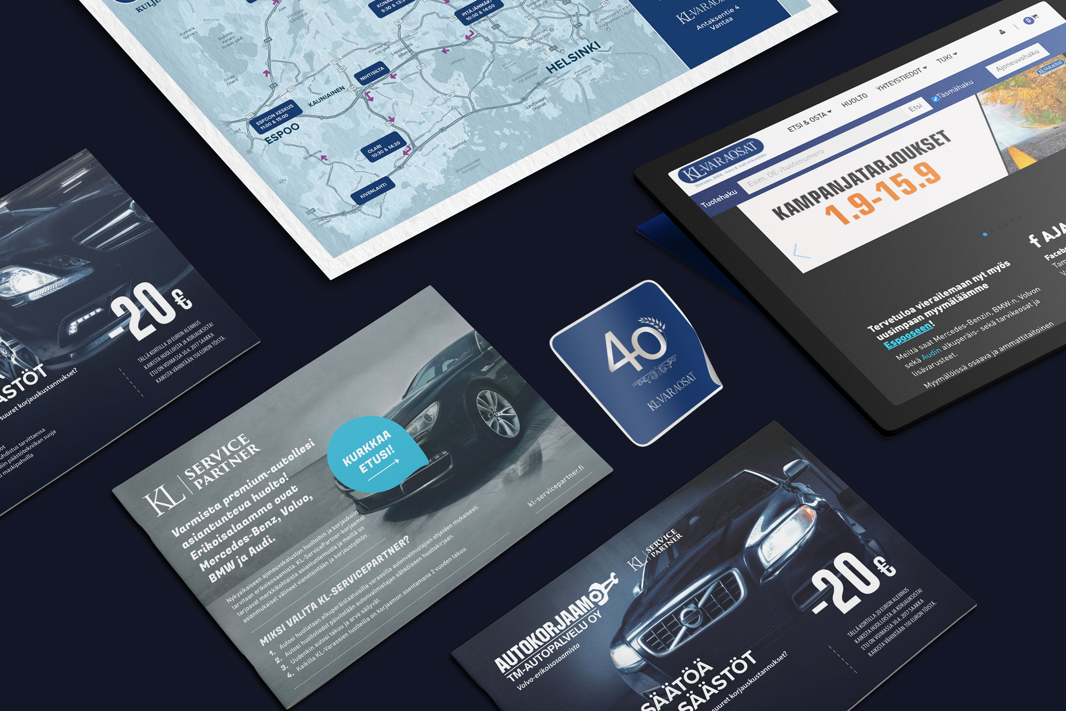 Olemme tehneet KL-Varaosien monikanavaista markkinointia jo vuosia. ServicePartner-korjaamoketju sai myös uuden brändi-ilmeen, joka sisälsi myös tilabrändäyssuunnitelmat.