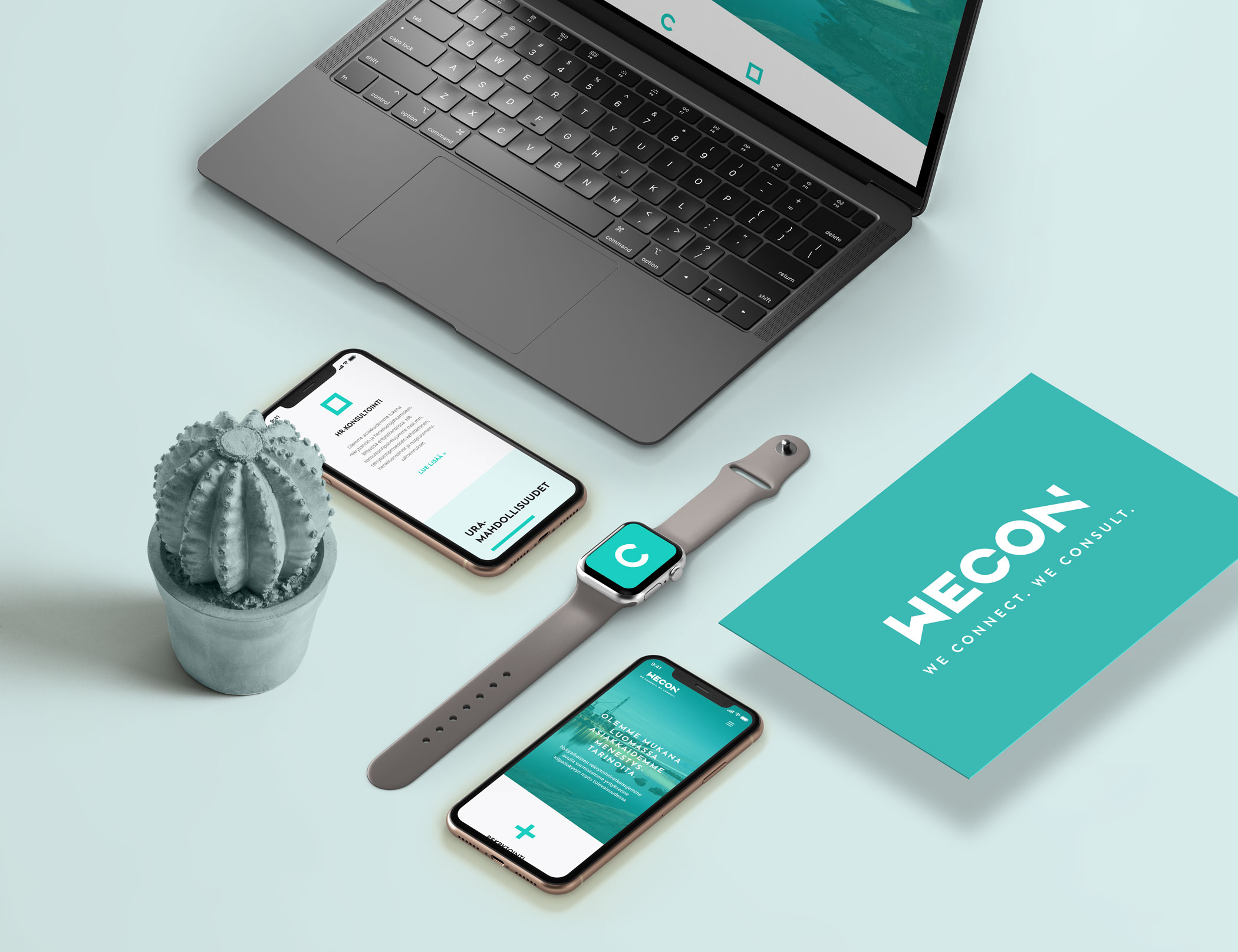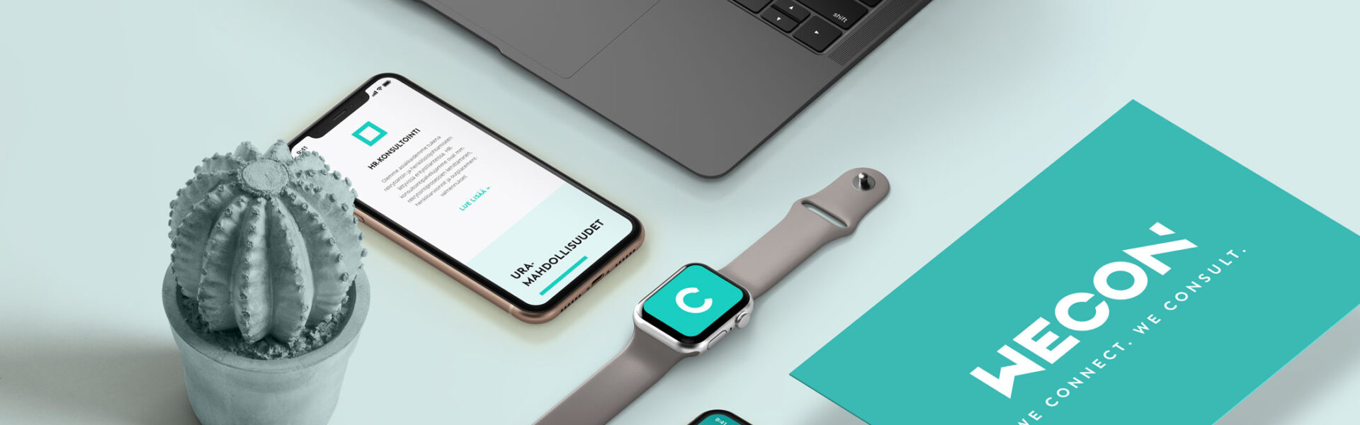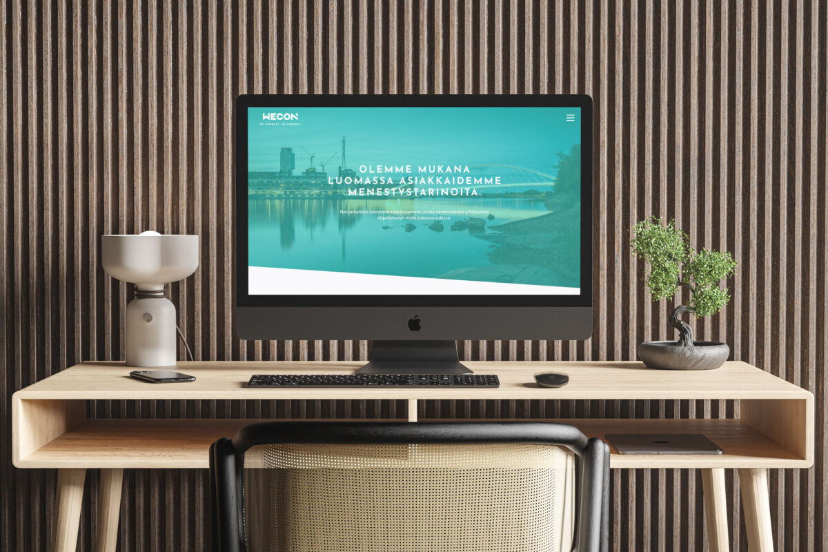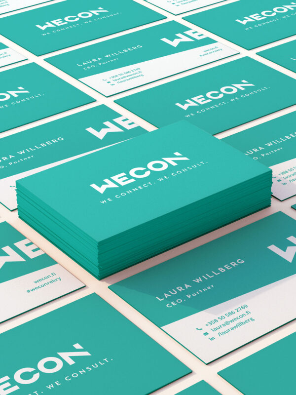 WeCon Oy on uusi tulokas Suomen rekrytointipalveluiden kentällä. Tuore yritys tarvitsi tietysti brändin perusainekset: visuaalisen ilmeen, logon, verkkosivut ja käyntikortit – ja mehän toimitimme.